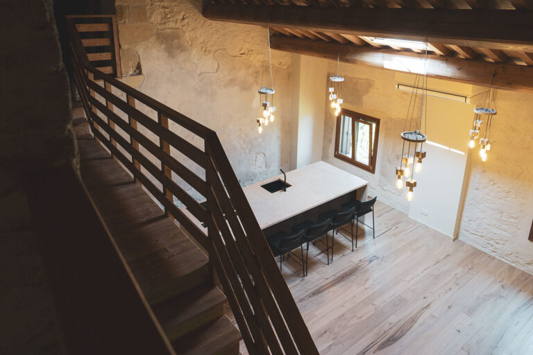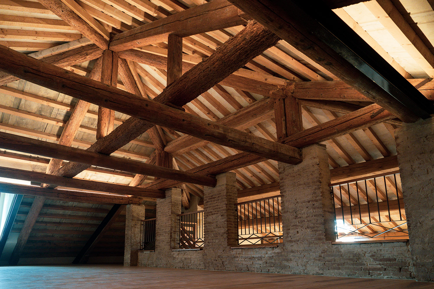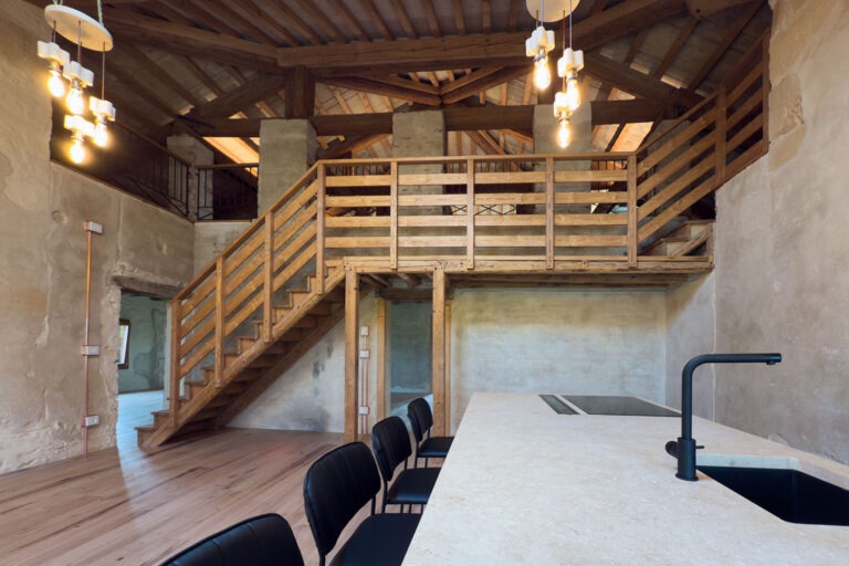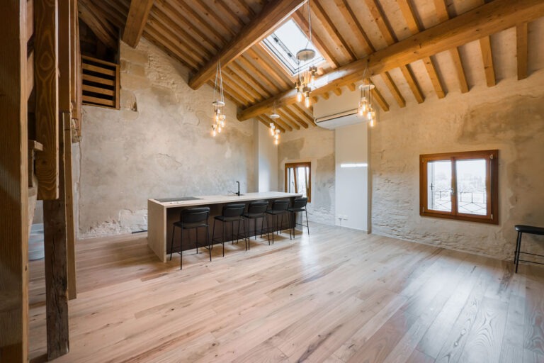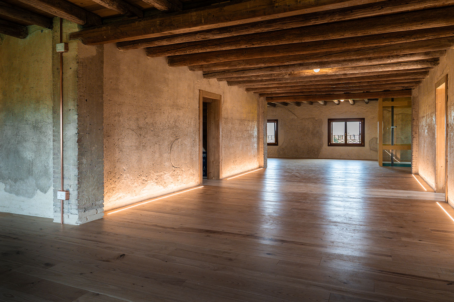 È decorata da modanature e da monofore in Pietra di Nanto che ne impreziosiscono il prospetto. In particolare, una finestrella riporta inciso l’anno 1642 a testimonianza della storicità e della struttura e della funzionalità agricola del complesso.